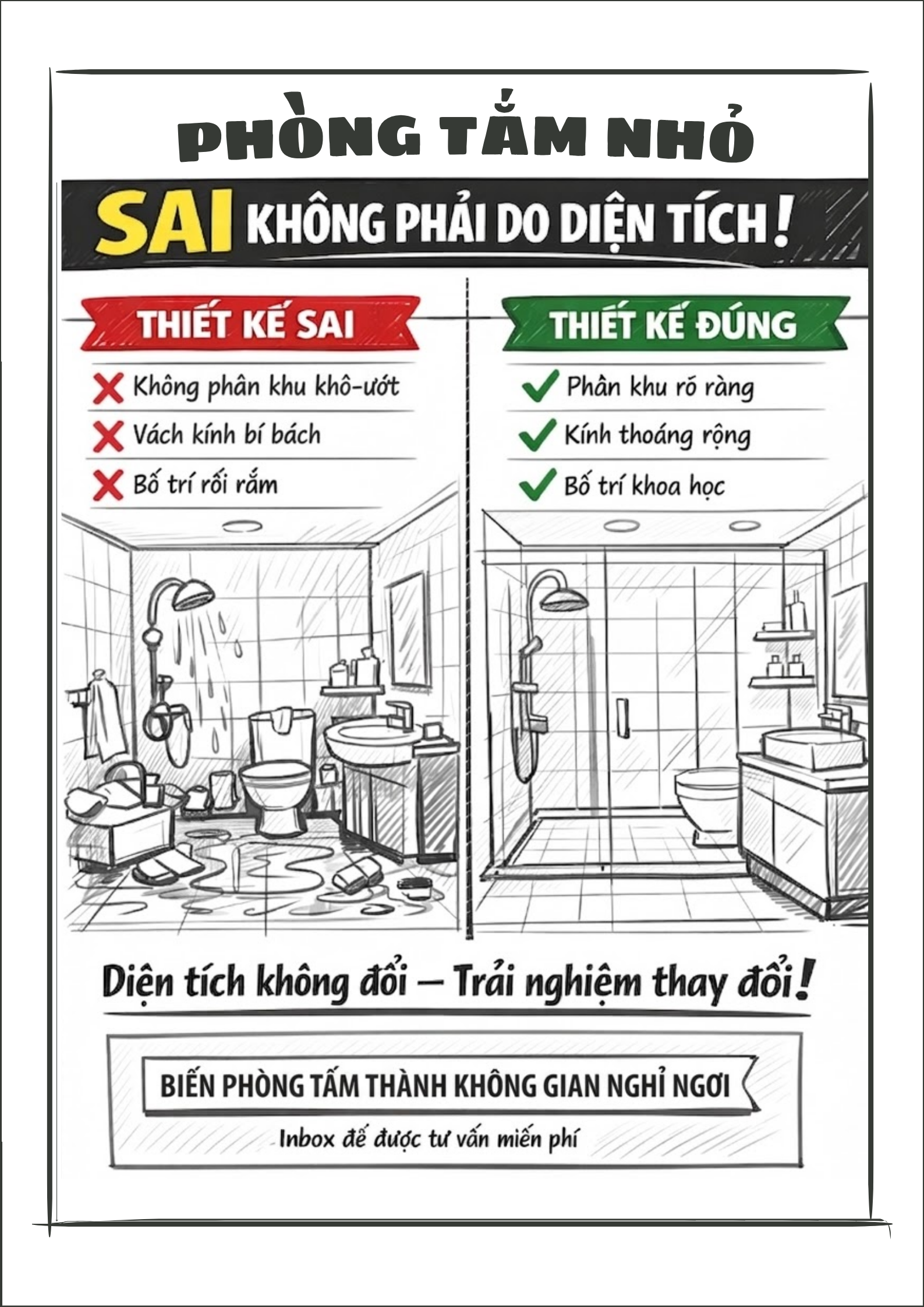 👉 Kết quả: phòng tắm luôn chật chội và khó chịu.