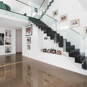 Với thiết kế không sử dụng trụ, toàn bộ lan can là kính cường lực trong suốt, tạo nên cảm giác liền mạch, thoáng đãng và mở rộng không gian sống.