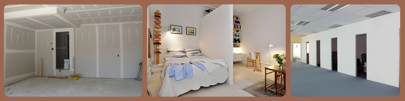 Vách ngăn thạch cao đã trở thành vật liệu "quốc dân" trong kiến trúc nội thất nhờ khả năng ứng dụng cực kỳ đa dạng, từ các không gian riêng tư đến những khu vực công cộng sầm uất. Trong các nhà ở và căn hộ chung cư, vách thạch cao là giải pháp tối ưu để tạo thêm phòng ngủ hoặc ngăn cách phòng khách và bếp mà không gây cảm giác nặng nề như tường gạch. Tại các văn phòng làm việc, showroom hay quán cà phê, vật liệu này giúp phân chia các khu vực chức năng một cách khoa học, đảm bảo sự riêng tư cần thiết nhưng vẫn giữ được độ thông thoáng và tính kết nối cho tổng thể công trình.
